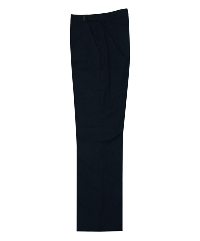 ネイビー(濃紺)色の足元がスッキリと見えるシルエットのレディーススラックス。