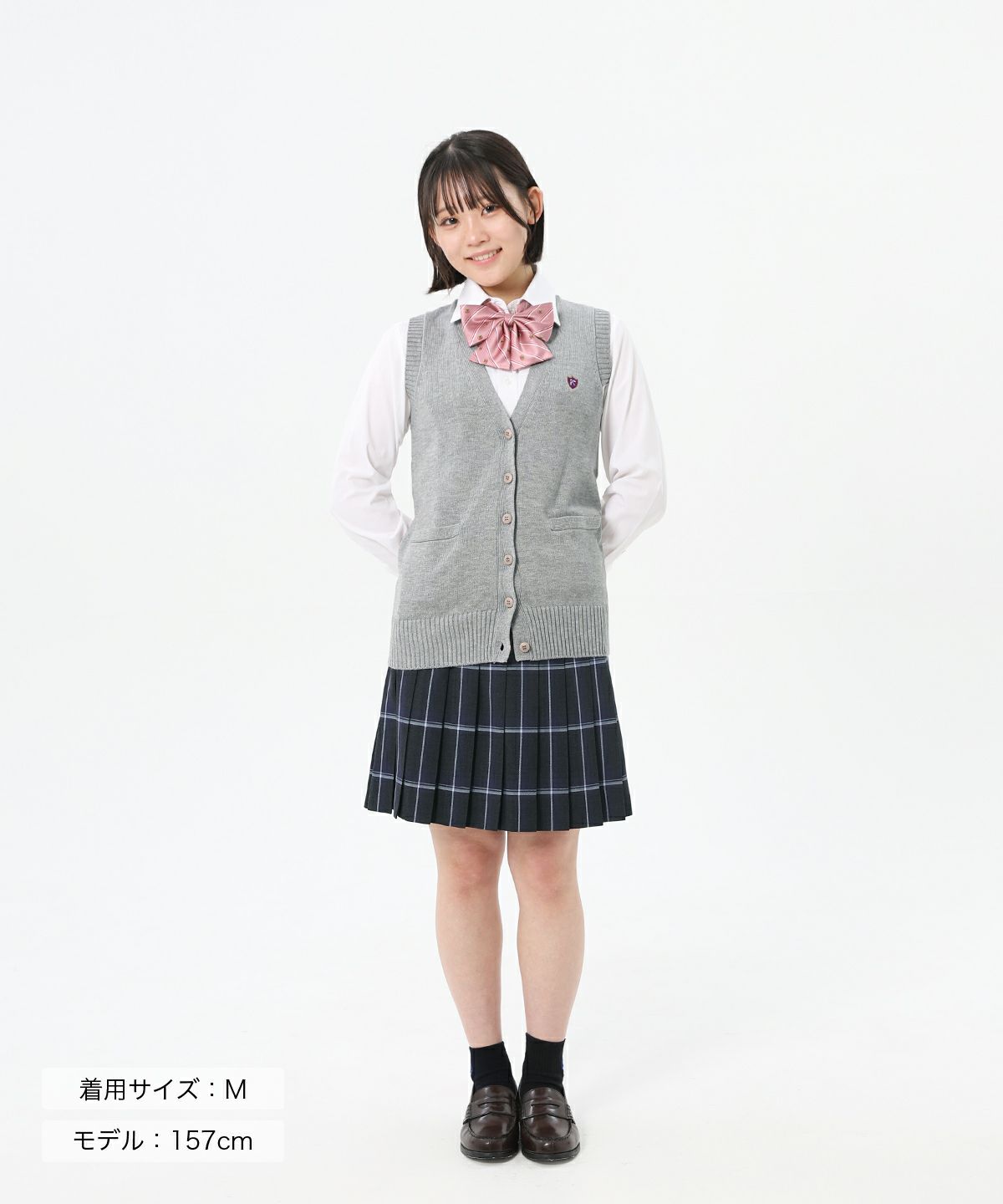 ・ブレザーの中に着ても、シャツの上に合わせてもバランスのいい着丈にこだわりました。