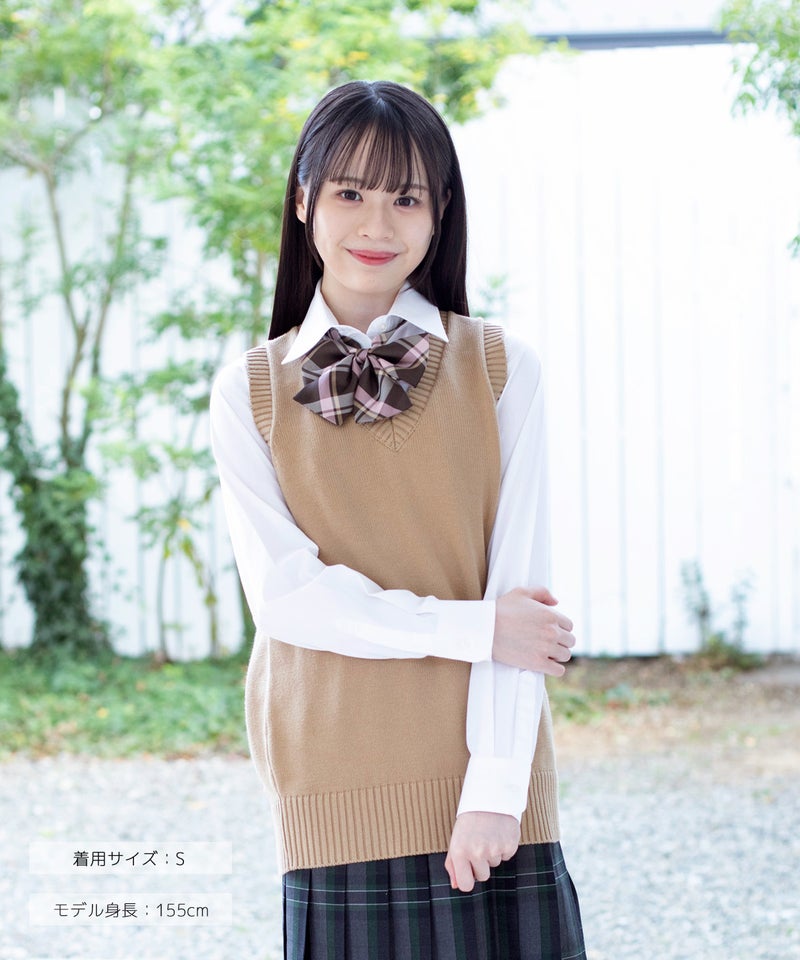 ゆったりとしたオーバーシルエットがラフになりすぎない、定番の学生スタイルで人気のニットベスト。