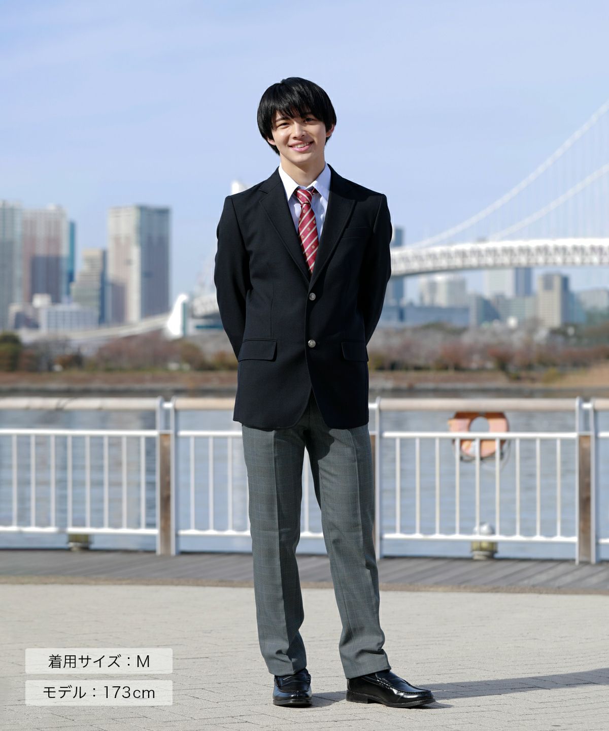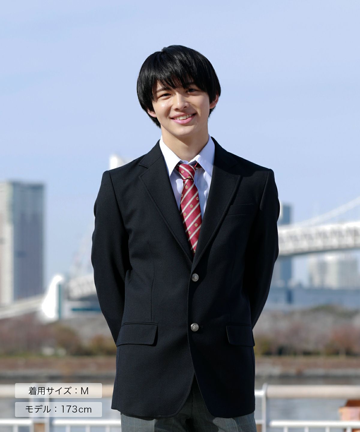 ・学生らしいディテールにこだわった深めの衿とステッチが特徴。ネクタイと相性抜群のVゾーンが衿元をきれいに見せます。