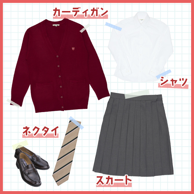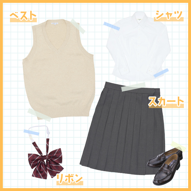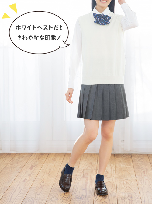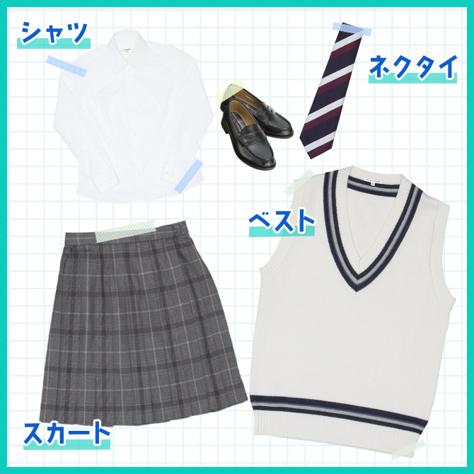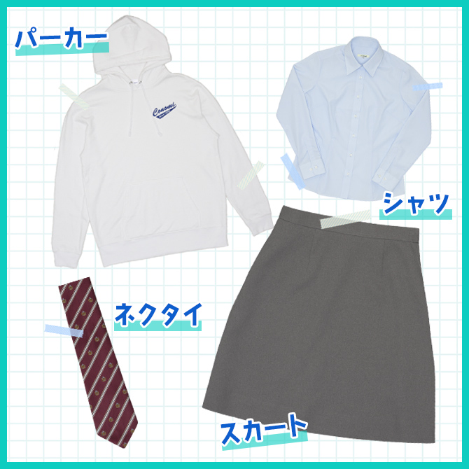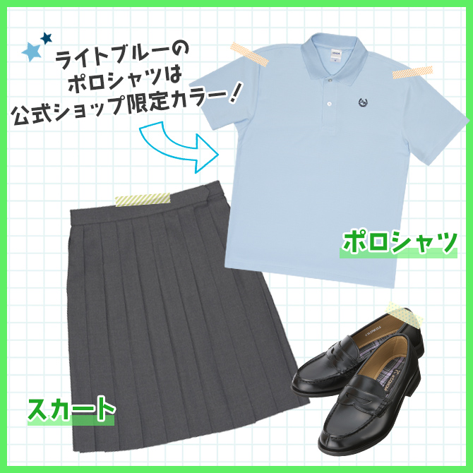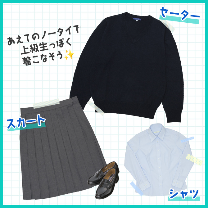 指定制服で履いているコも休日はトップスを変えて制服コーデを楽しんでみてね。