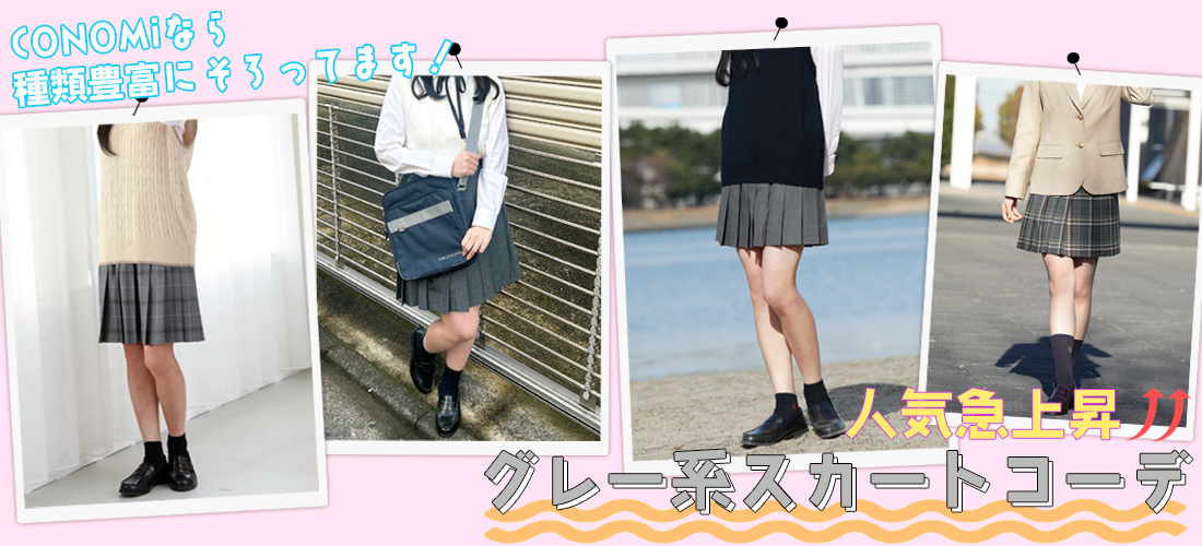 CONOMiには無地グレースカートだけでなく、チェックスカートでもグレーの柄が種類豊富にそろってます!