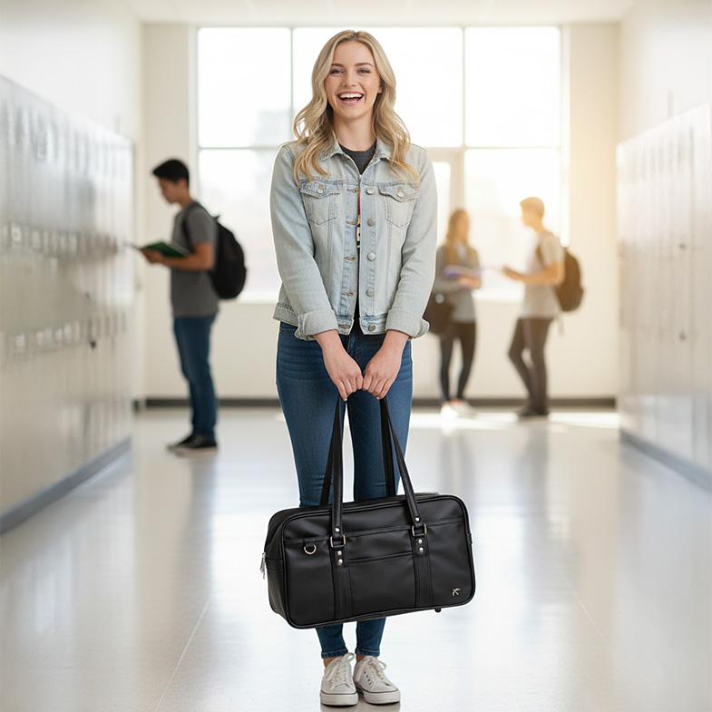 Practicality meets beauty. Every element — the zipper, handle, and inner structure — has been thoughtfully designed for comfort and durability. The lightweight body allows effortless use, while the spacious interior accommodates textbooks, notebooks, tablets, and personal essentials. Whether for school, travel, or daily life, it offers both reliability and refined elegance.