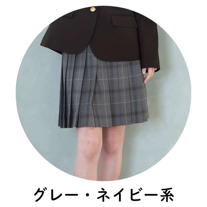 最後は盛りだくさんなグレー・ネイビー系のスカートコーデ☆それぞれお落ち着いたカラーなので大人っぽいコーデに仕上がります。主張しすぎないのでカラーブレザーやどんなカラーのニットとも合わせやすい!秋冬のシックなムードにピッタリなカラーです。