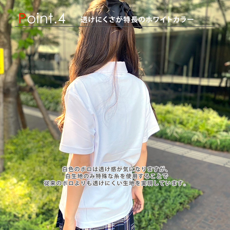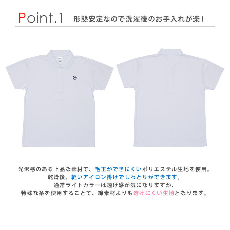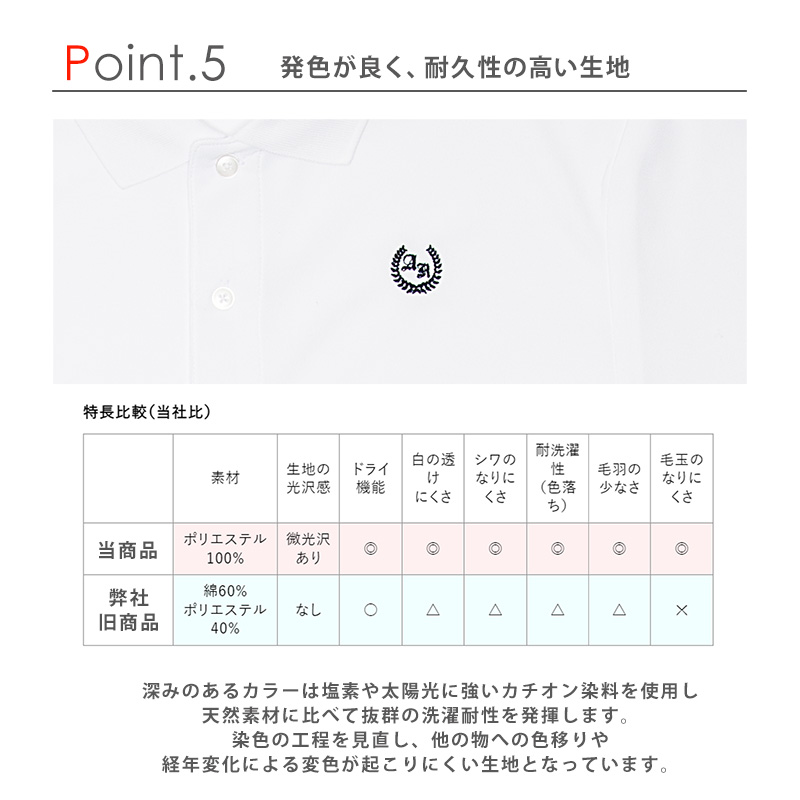 白色のポロは透け感が気になりますが、白生地のみ特殊な糸を使用することで従来のポロよりも透けにくい生地を実現しています。