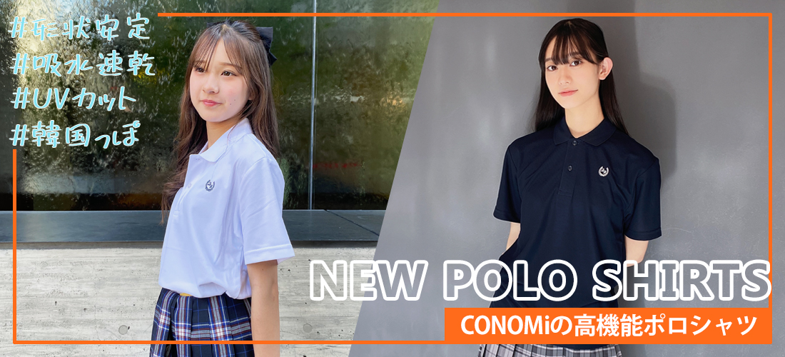 夏のスクールスタイルと言えば半袖シャツ+ベストですが、もっとシンプルに着こなしたい!という方にはポロシャツがオススメ。 今年、ユニセックスで着れるNEWアイテムが登場しました!CONOMiのポロシャツは通気性に優れ、 肌にまとわりつかず、汗冷えしにくい快適で清涼感のある着心地が特徴。毎日の通学で着る子は2枚持っていると便利ですよ♪